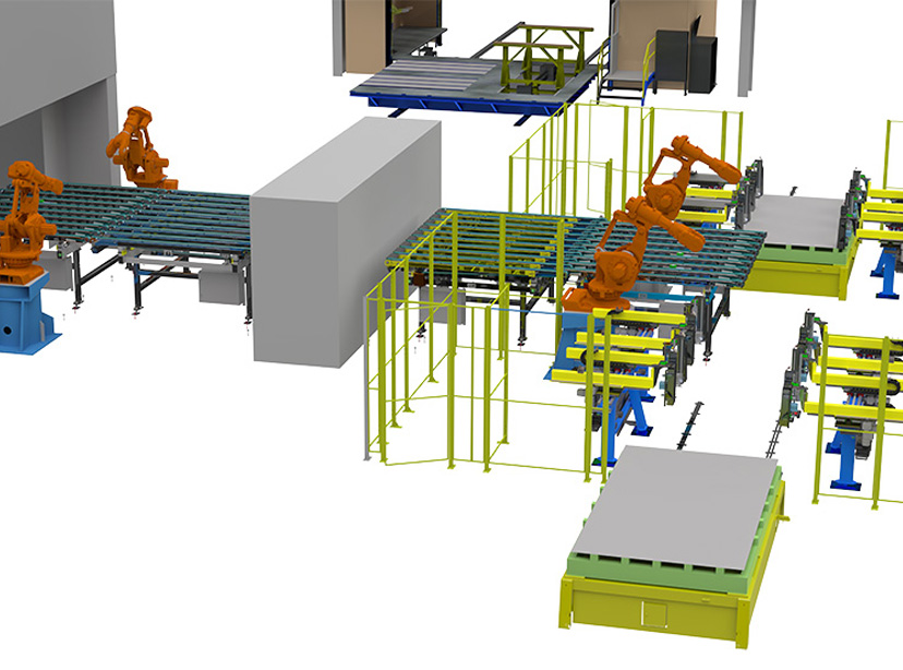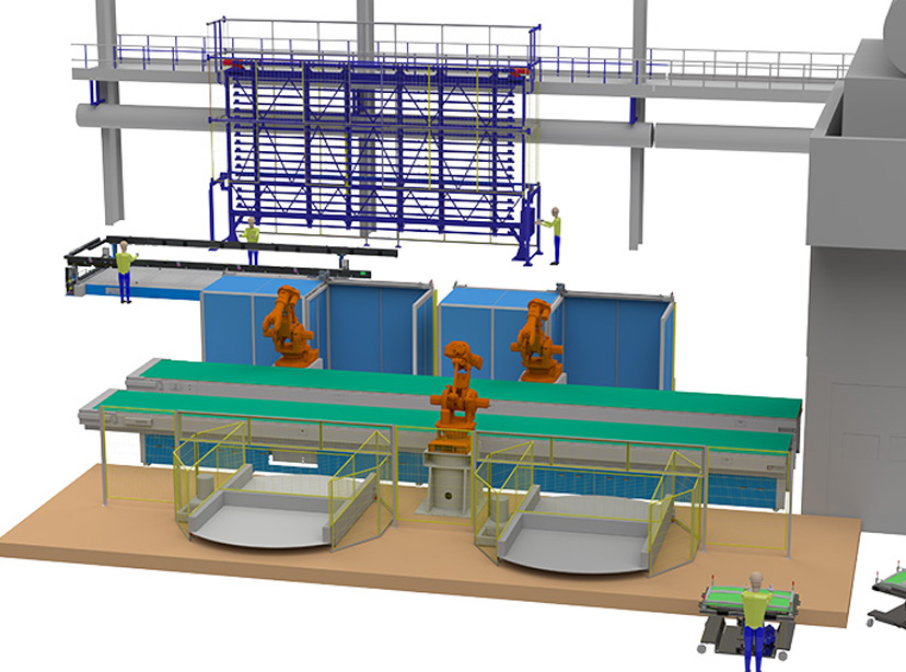 Soluciones para la salida de piezas: transporte, descarga, apilado automático y control de calidad.